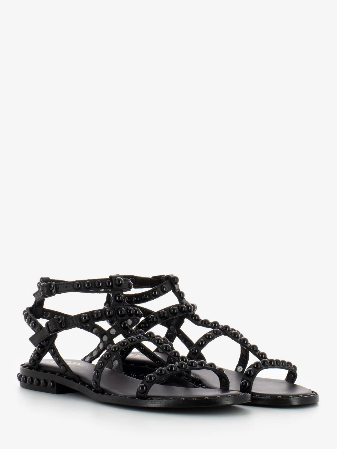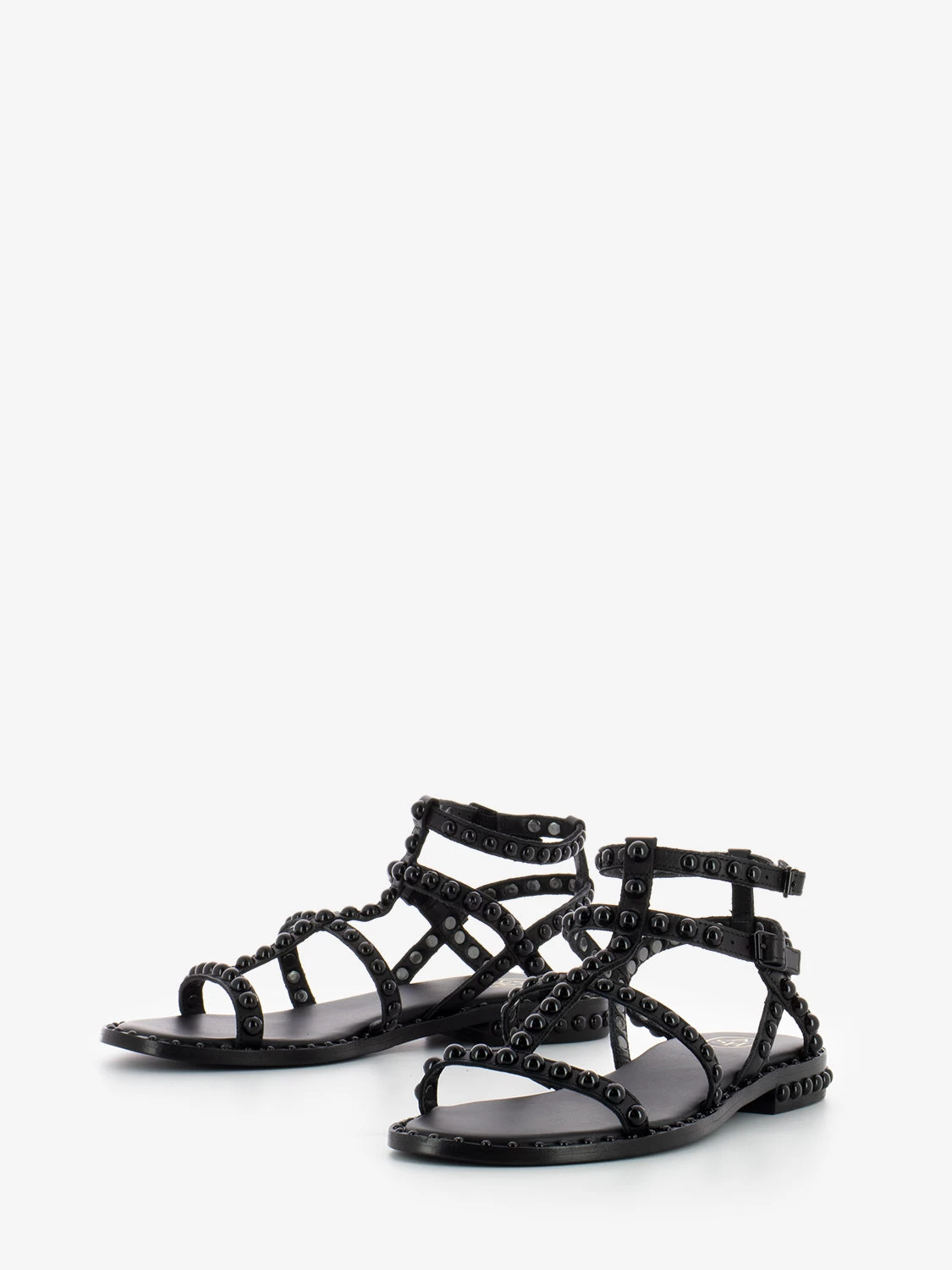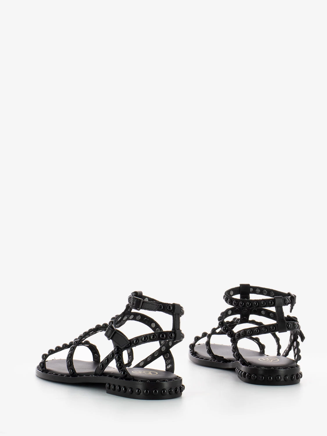 Borchie tono su tono applicate su tomaia, bordo pianta e tacco.