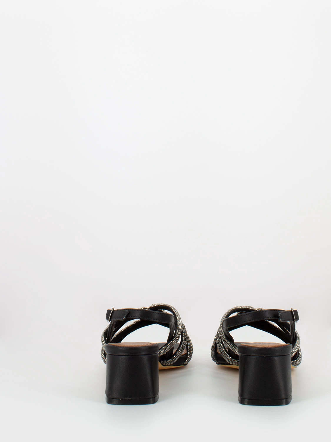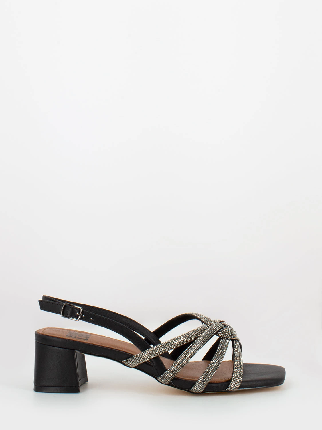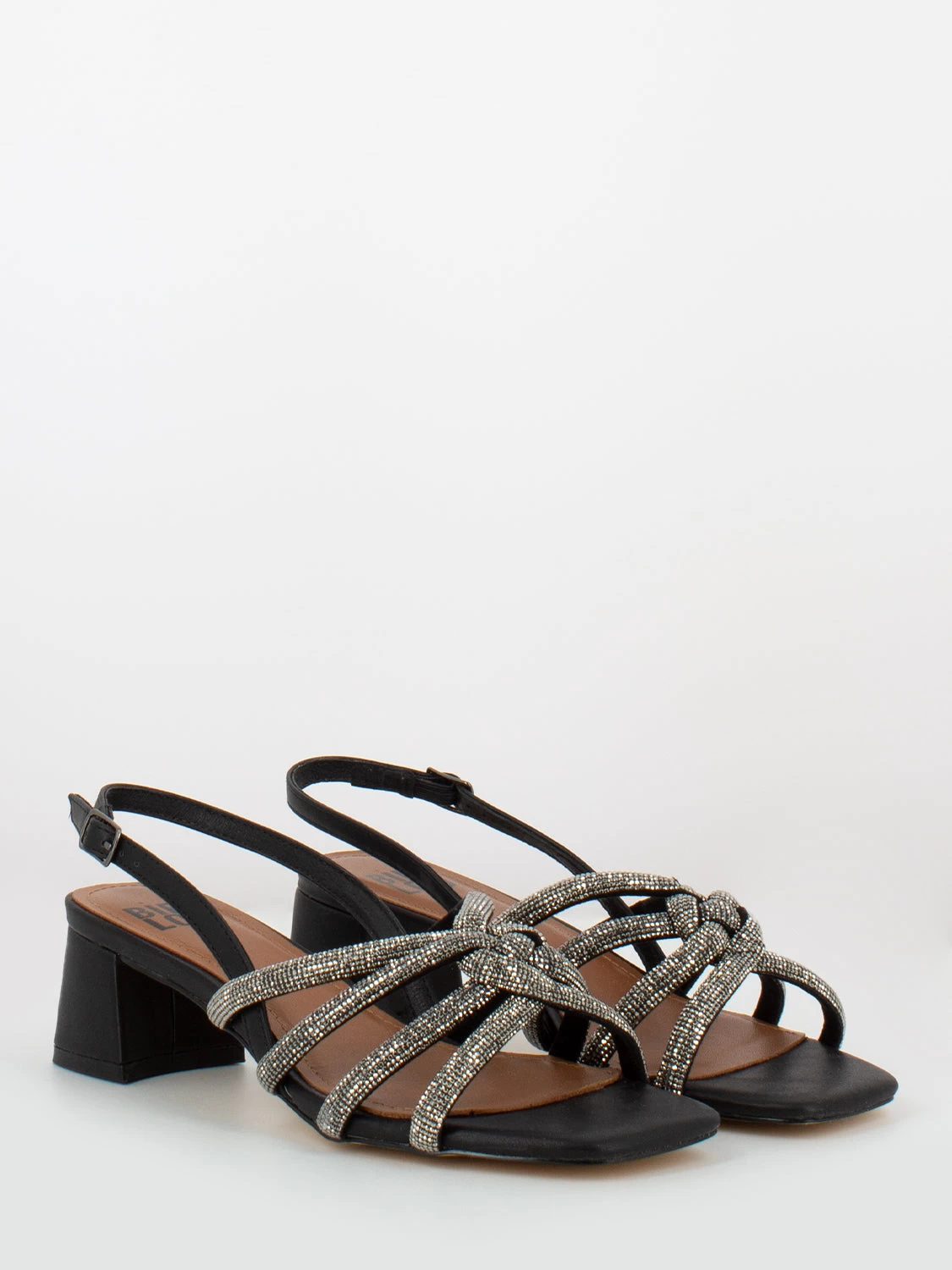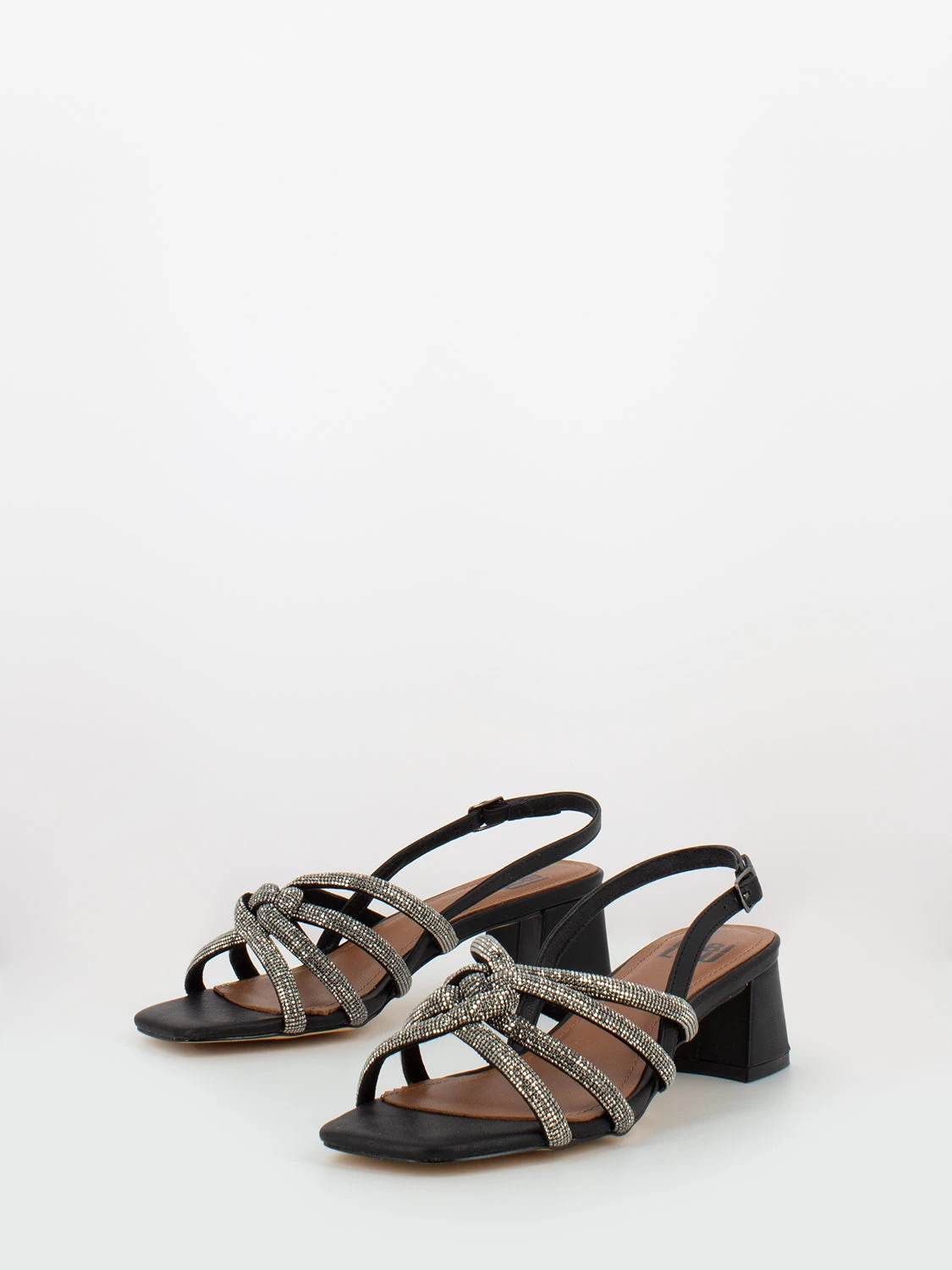 Fasce sottili imbottite con micro-strass applicati e nodo sul dorso.