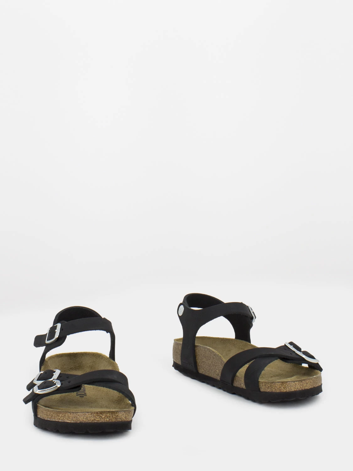 Doppio cinturino incrociato regolabile con fibbia in metallo.