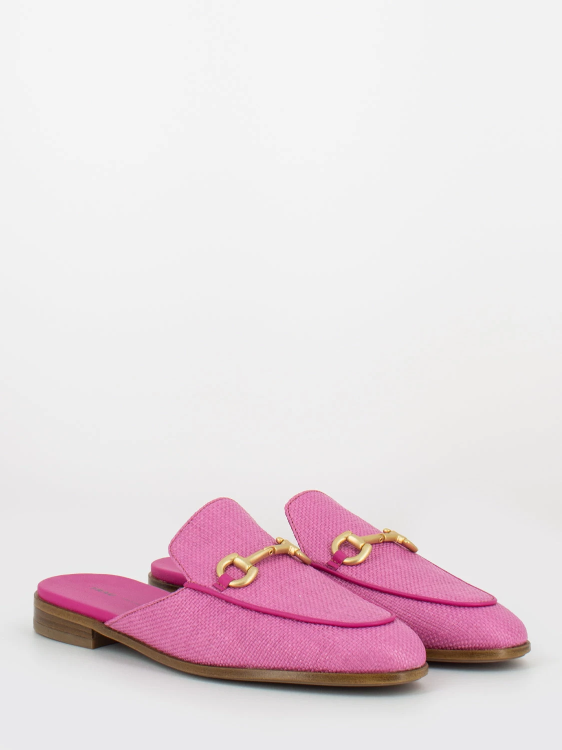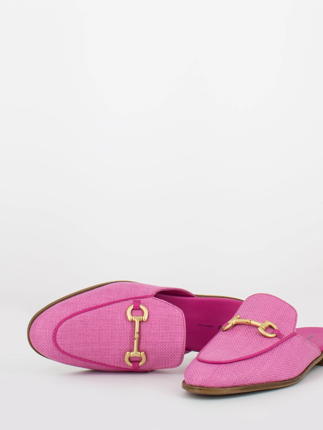 Tomaia in pelle effetto raffia, pianta in pelle e fondo sintetico.