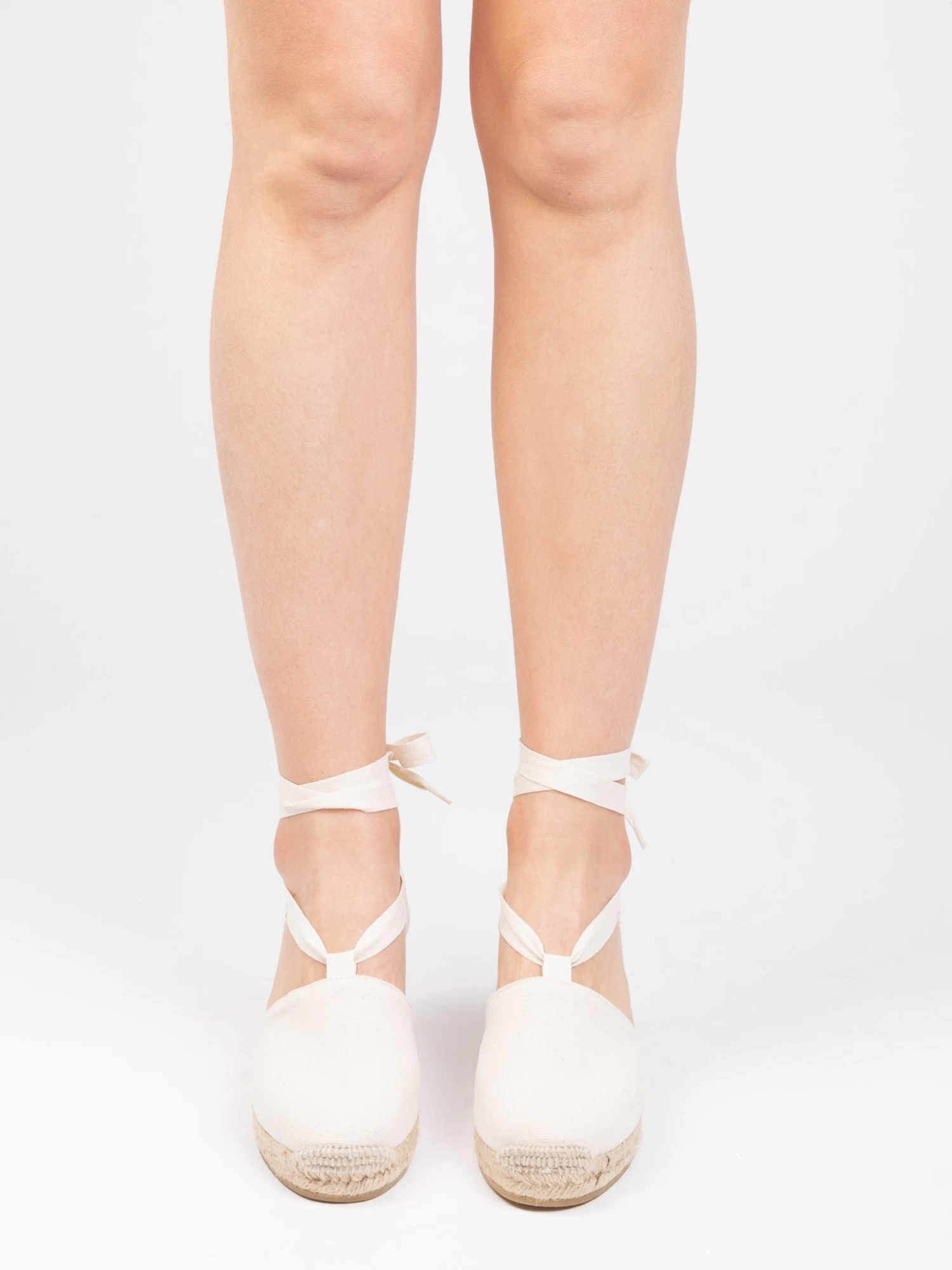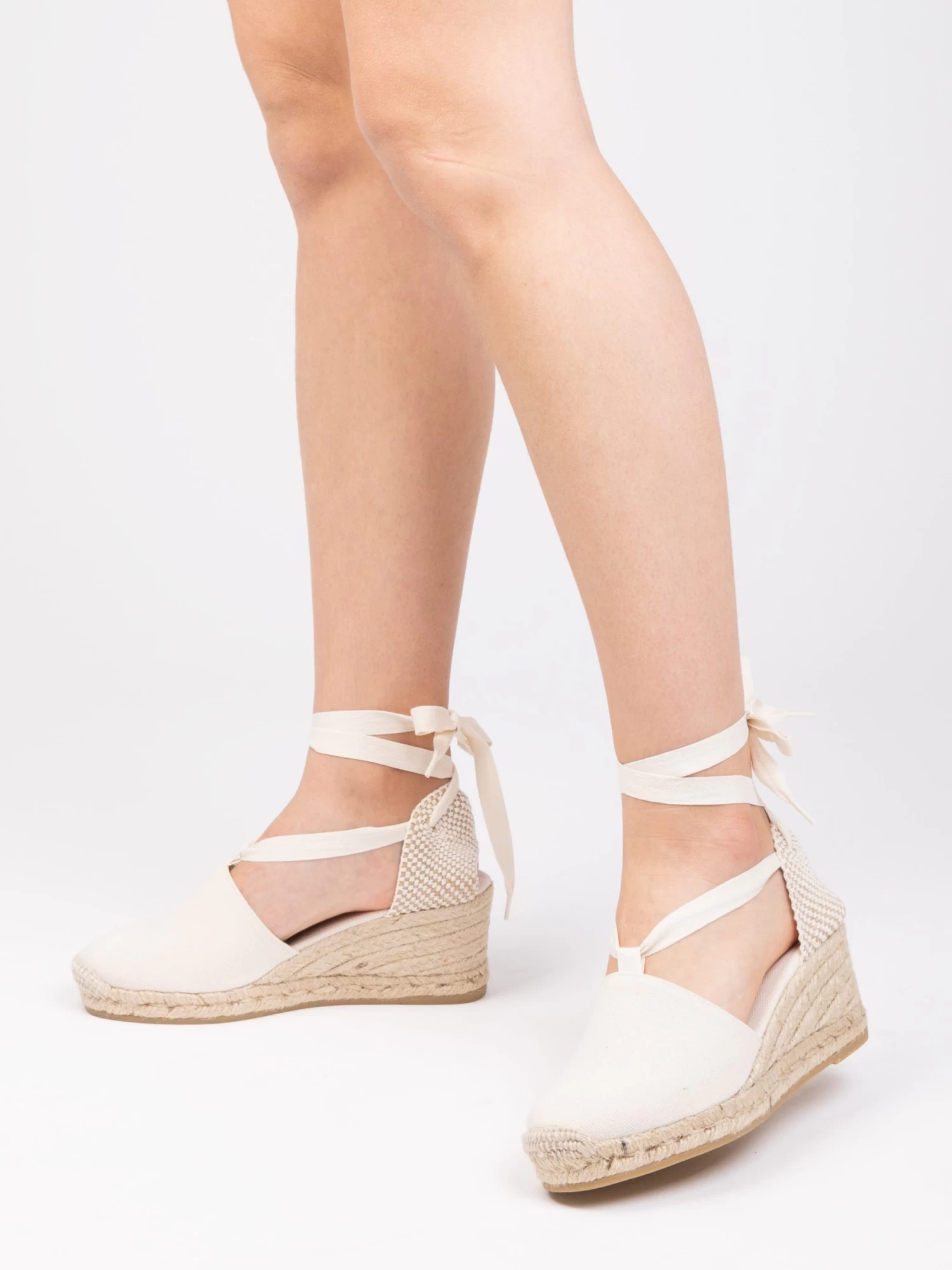 Punta chiusa in tela, tallone chiuso in filato e corda.