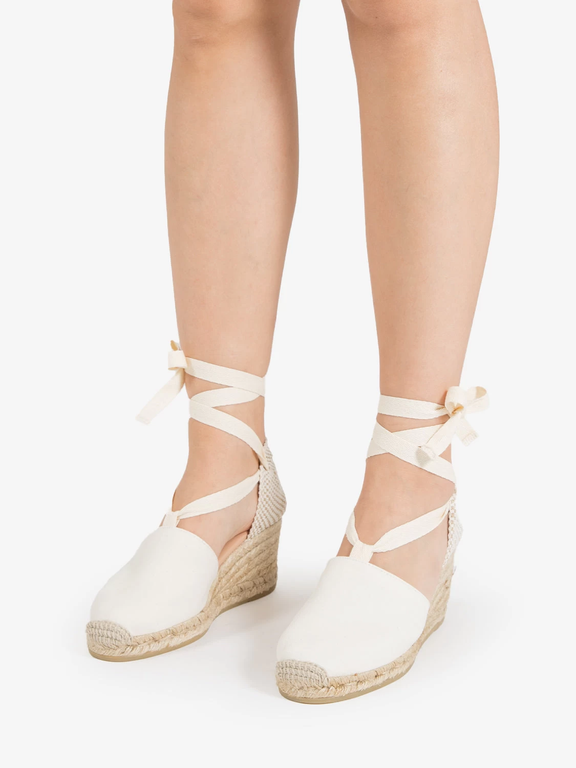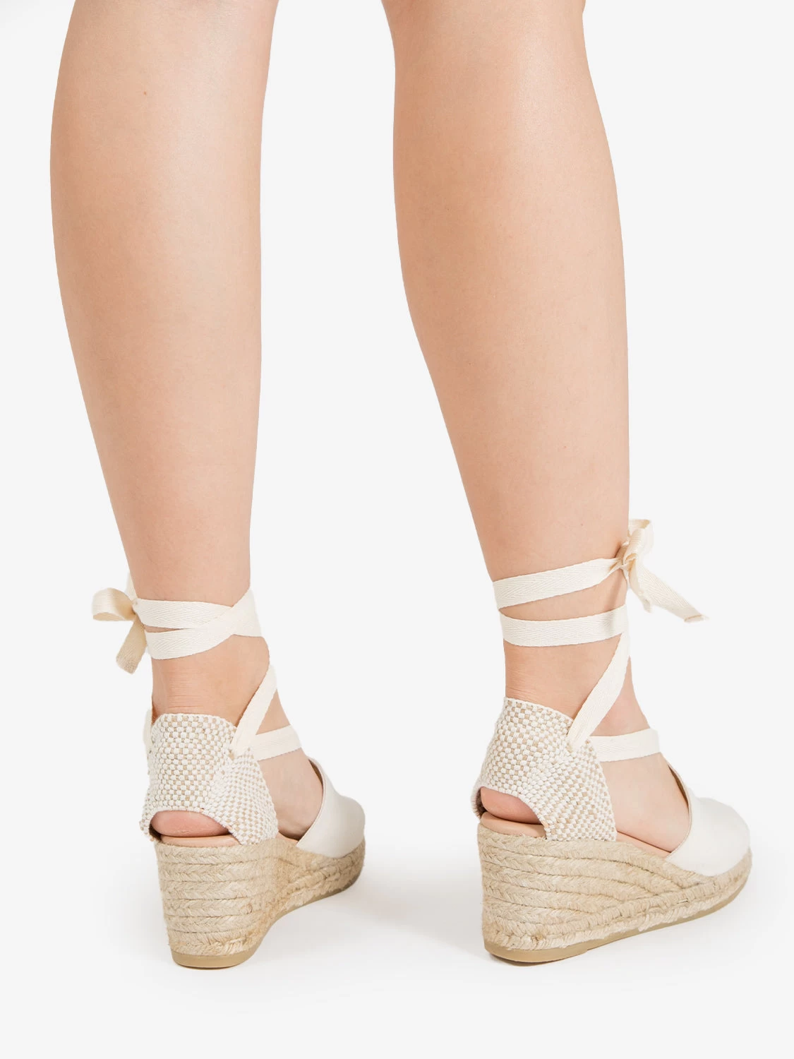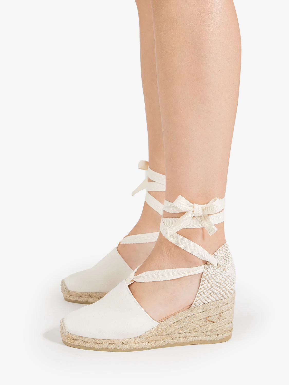 Punta chiusa in tela, tallone chiuso in filato e corda.