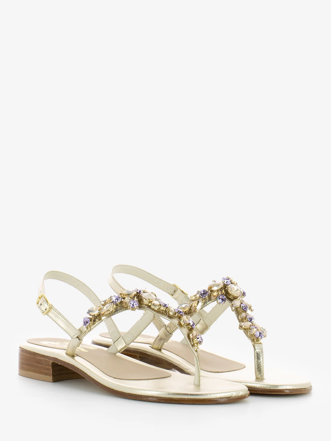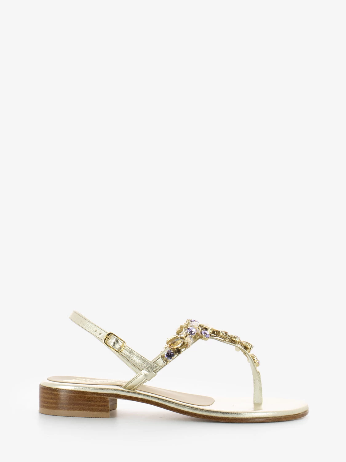 Parte sul dorso a T e cinturino con fibbia alla caviglia.