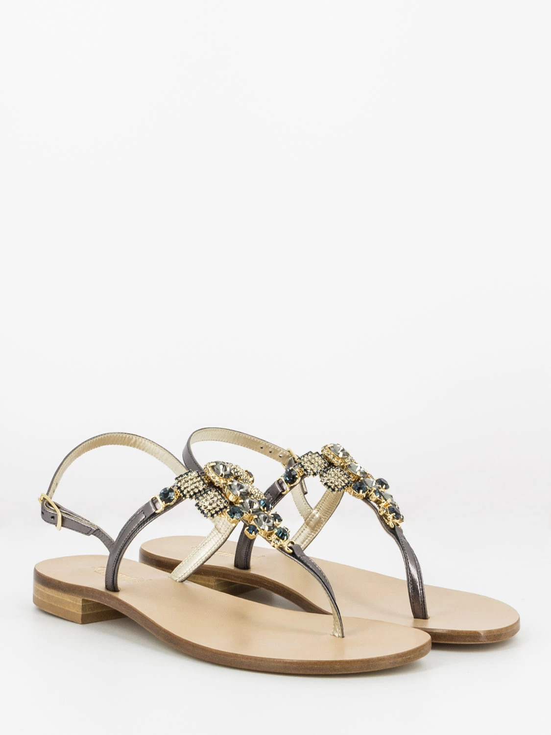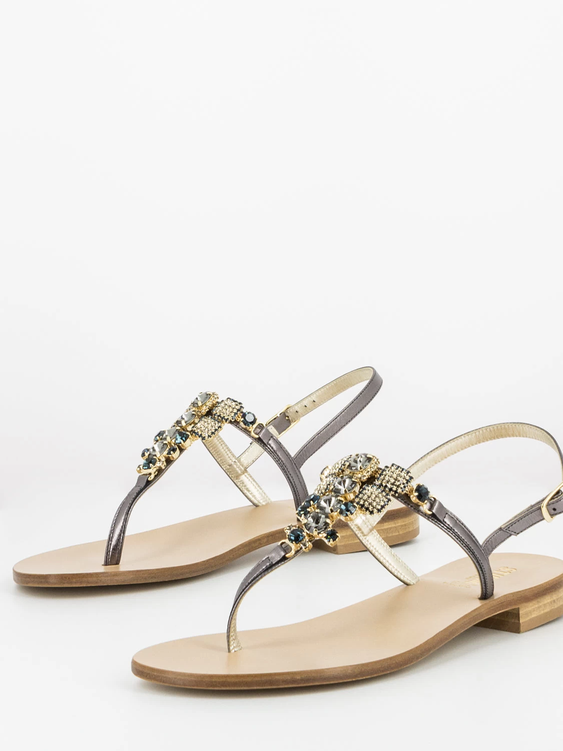 Parte sul dorso a T e cinturino con fibbia alla caviglia.