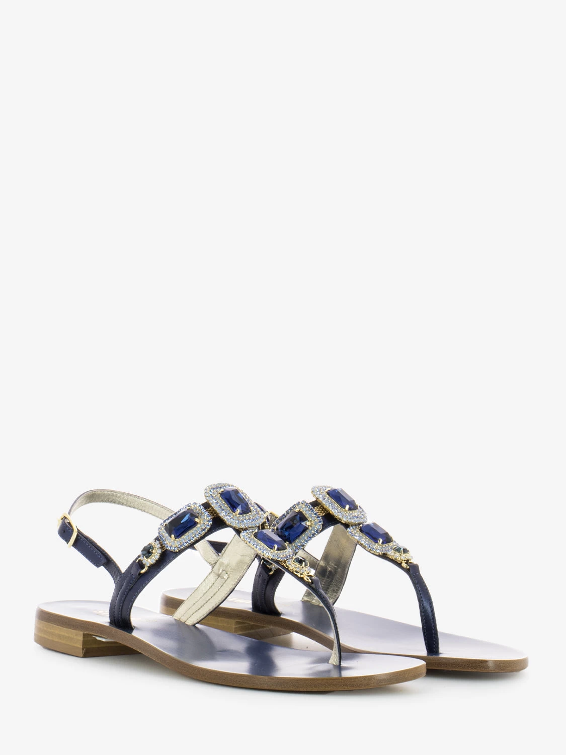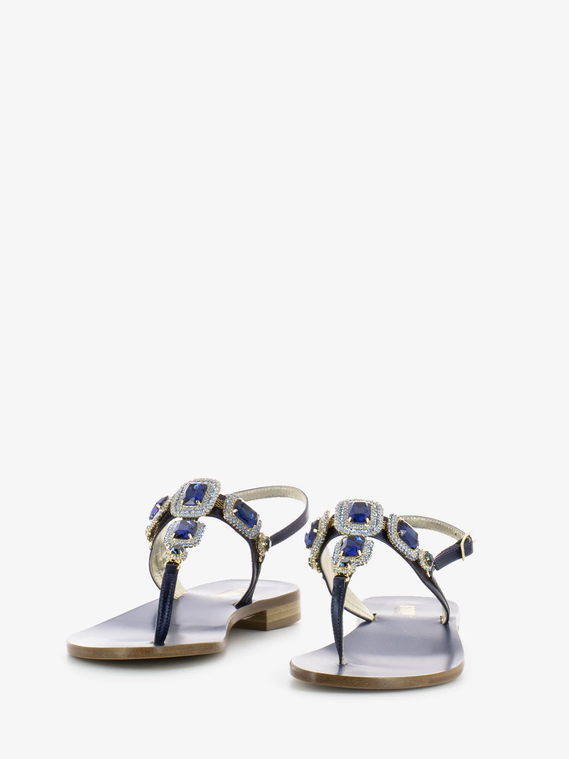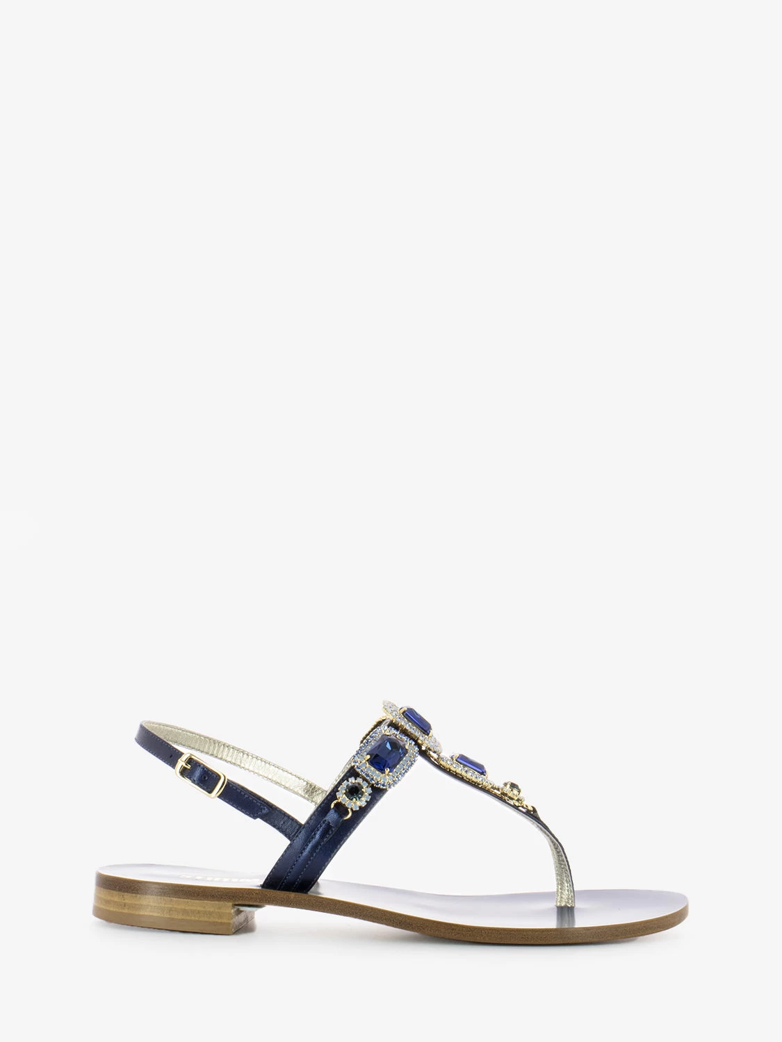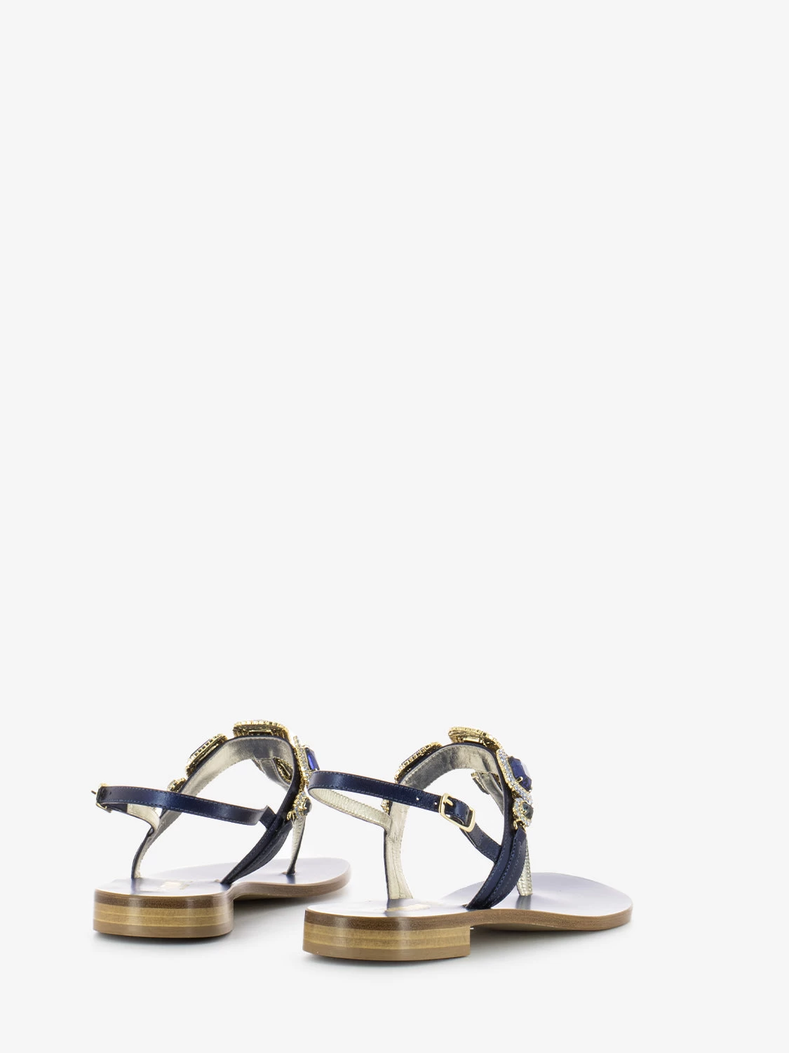 Parte sul dorso a T e cinturino con fibbia alla caviglia.