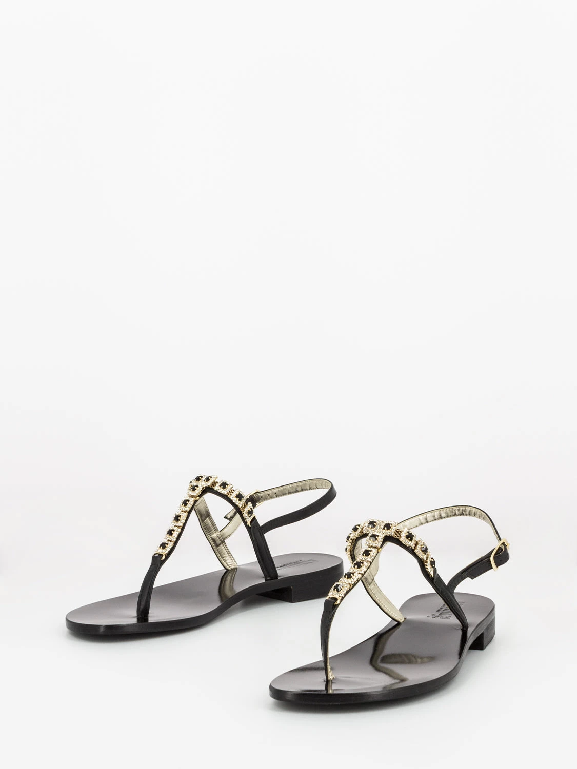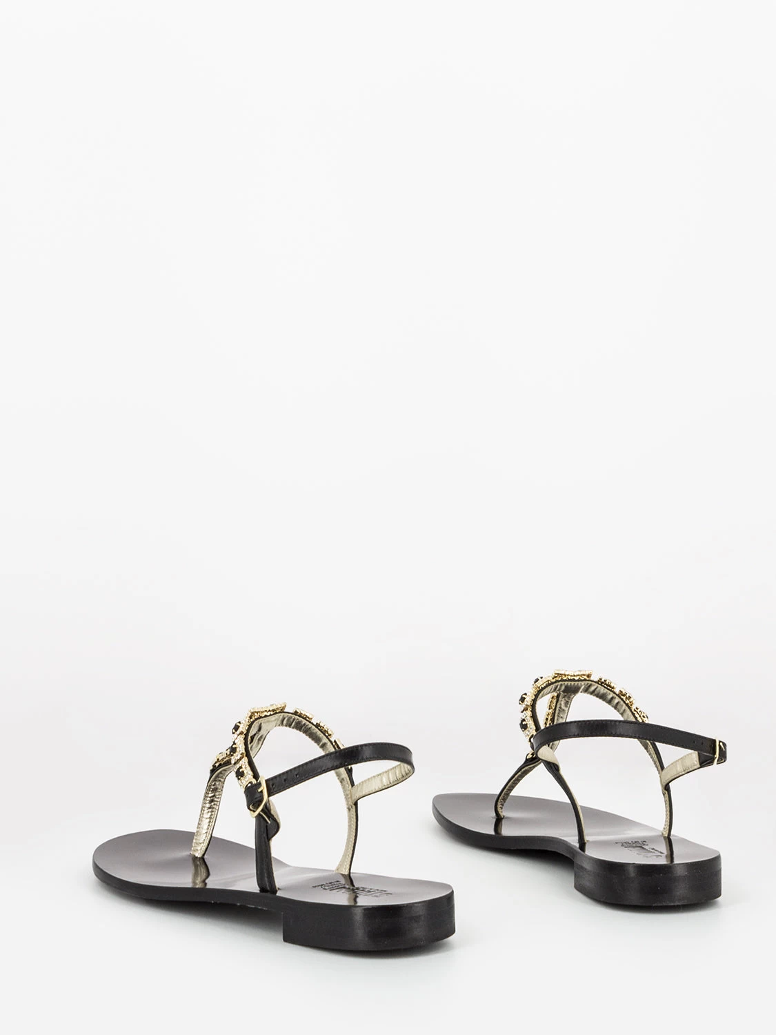Parte sul dorso a T e cinturino con fibbia alla caviglia.
