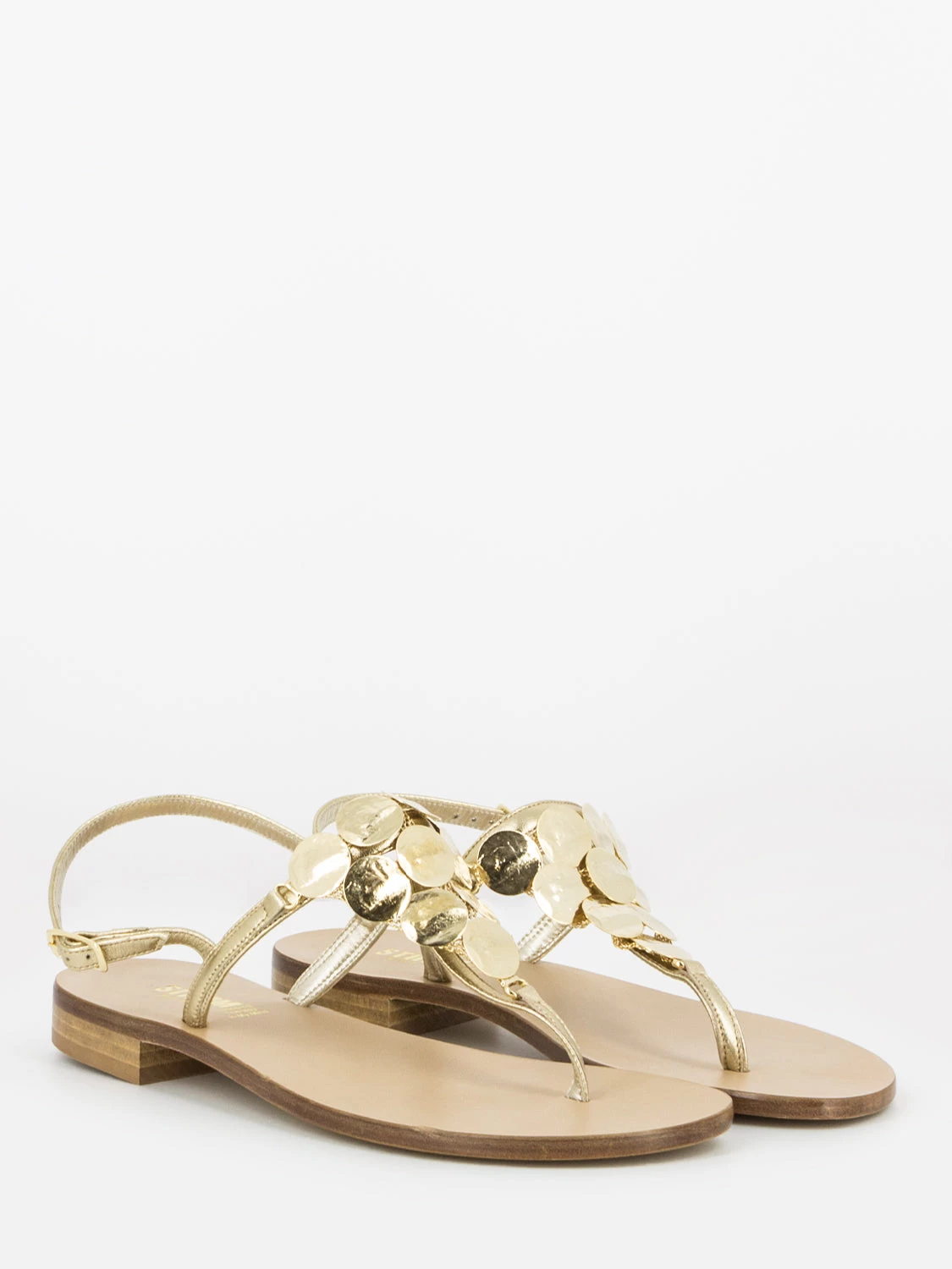 Parte sul dorso a T e cinturino con fibbia alla caviglia.