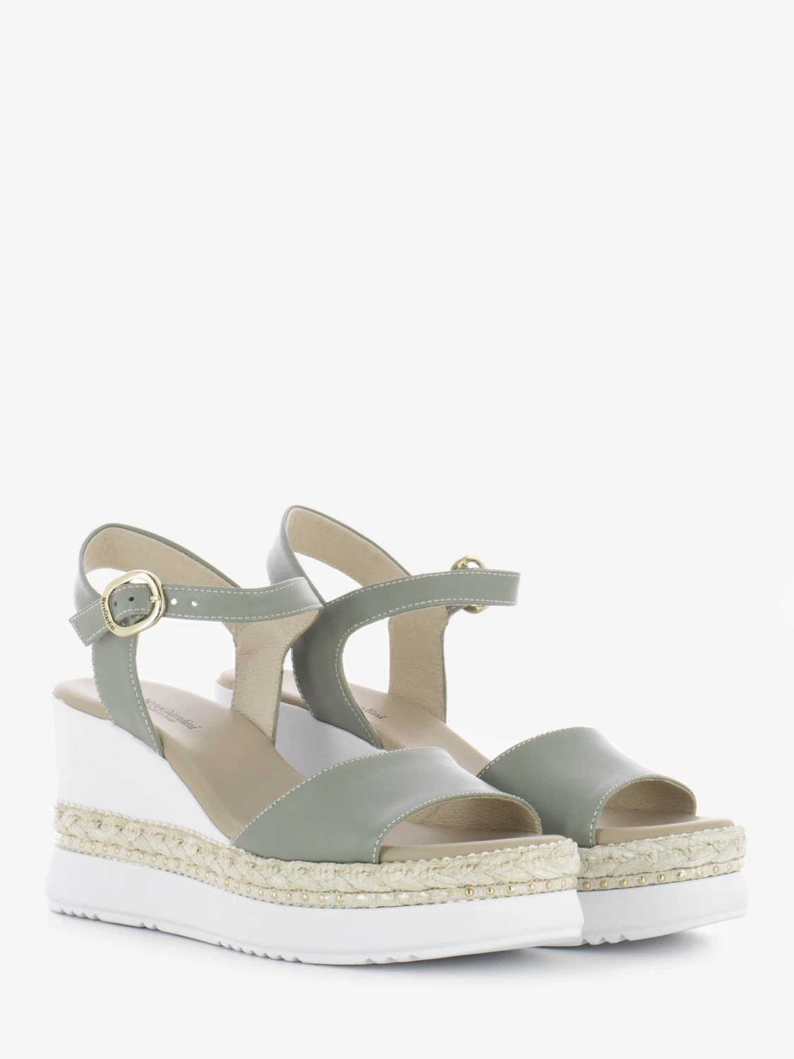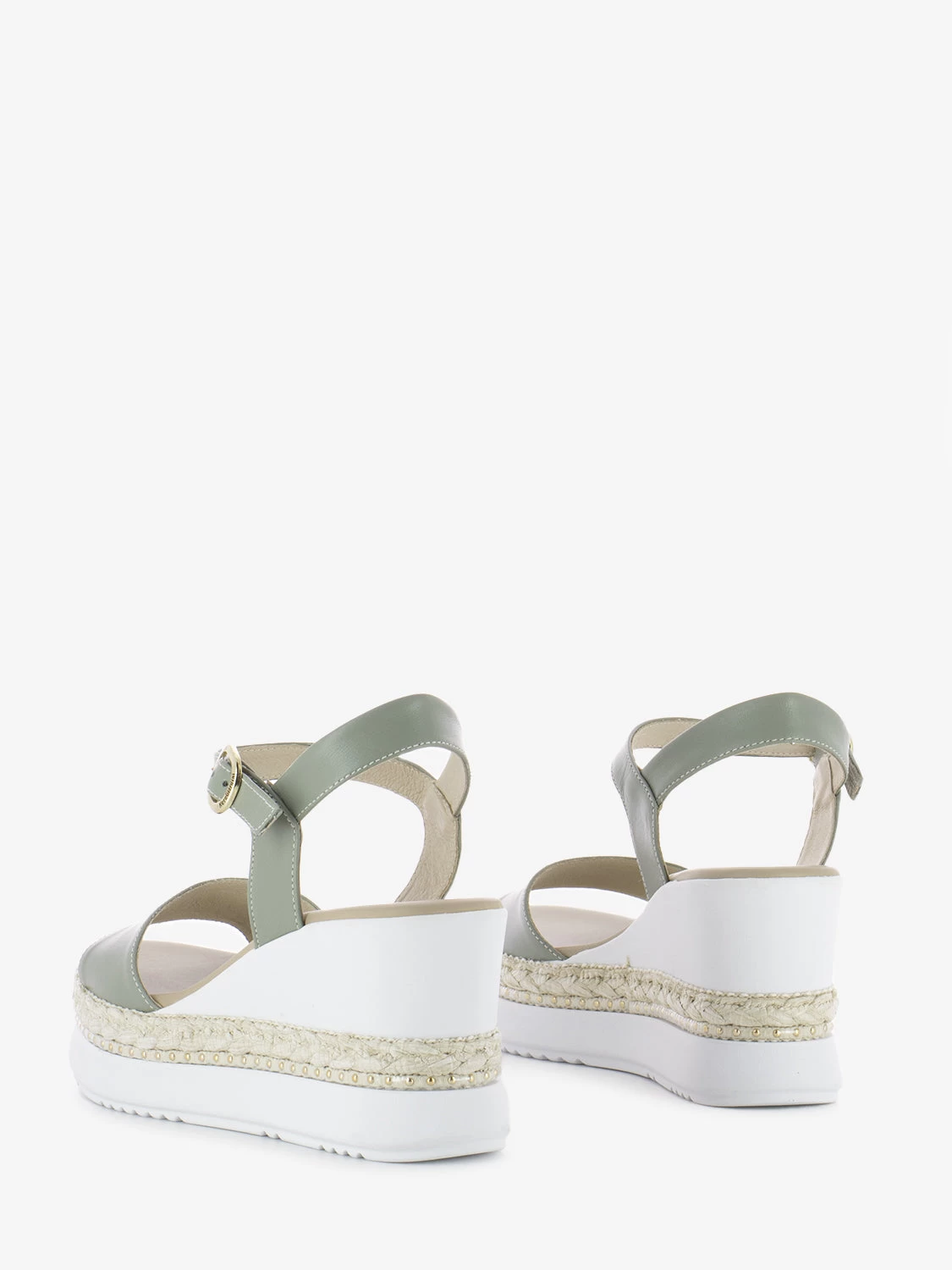 Fondo in gomma con inserti in paglia ricamata con borchiette.