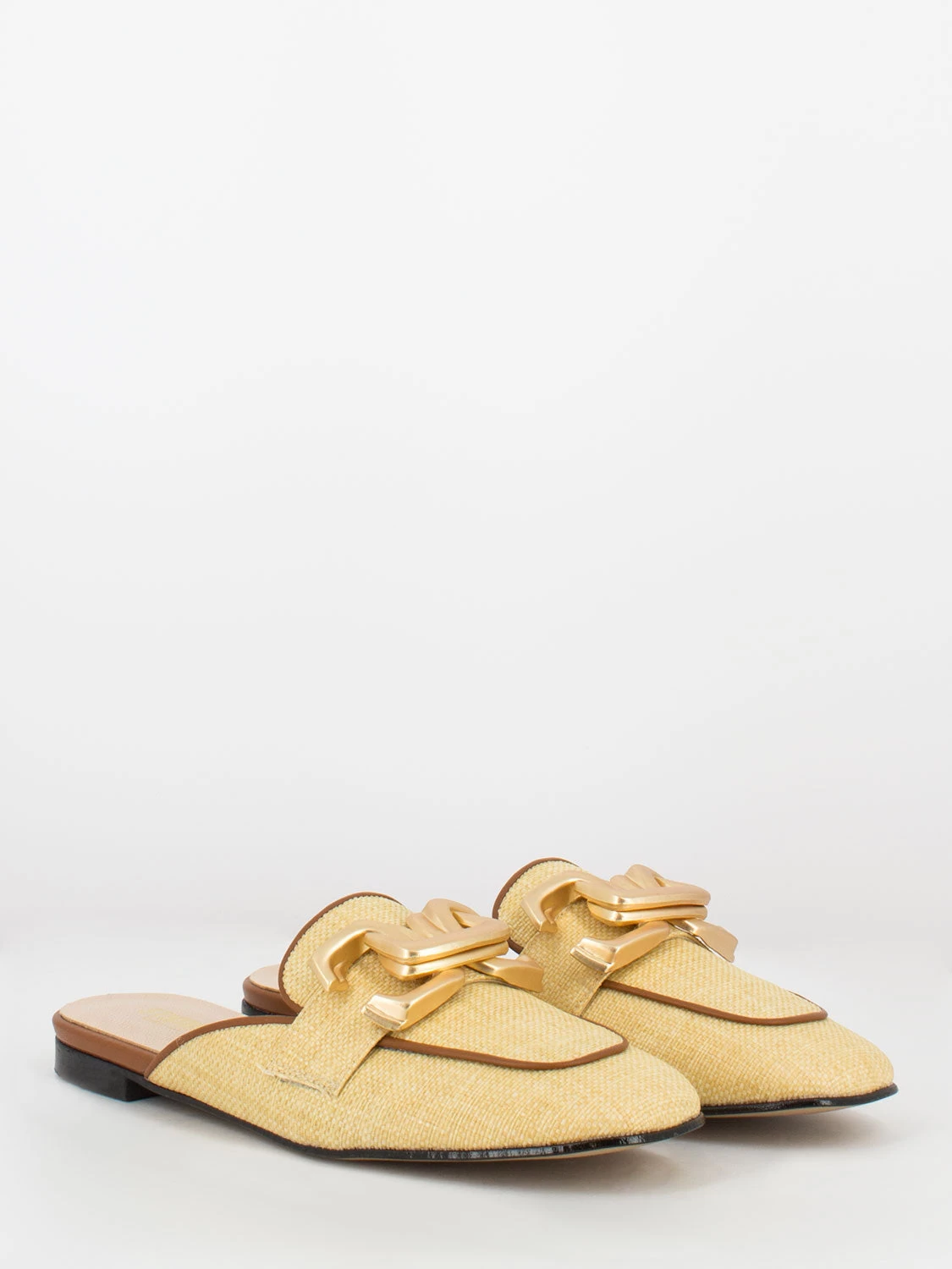 Tomaia in juta con rifiniture in nappa.
