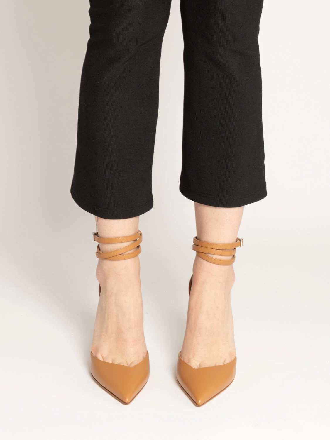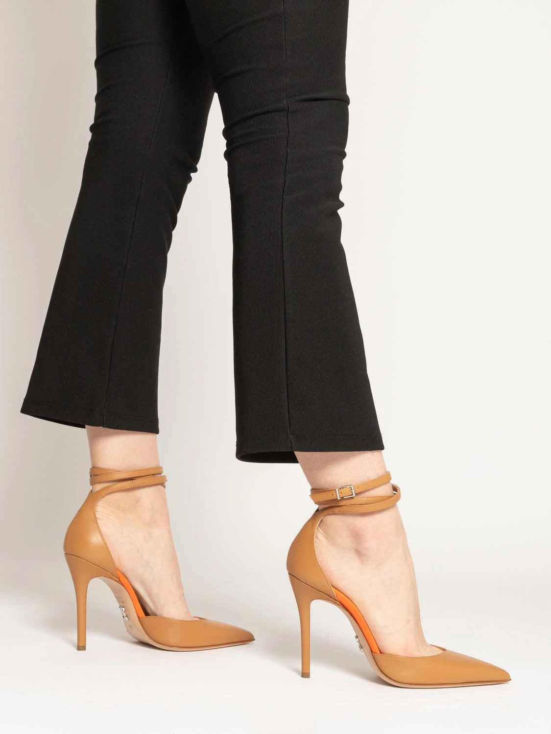 Tallone chiuso, cinturino triplo giro alla caviglia.