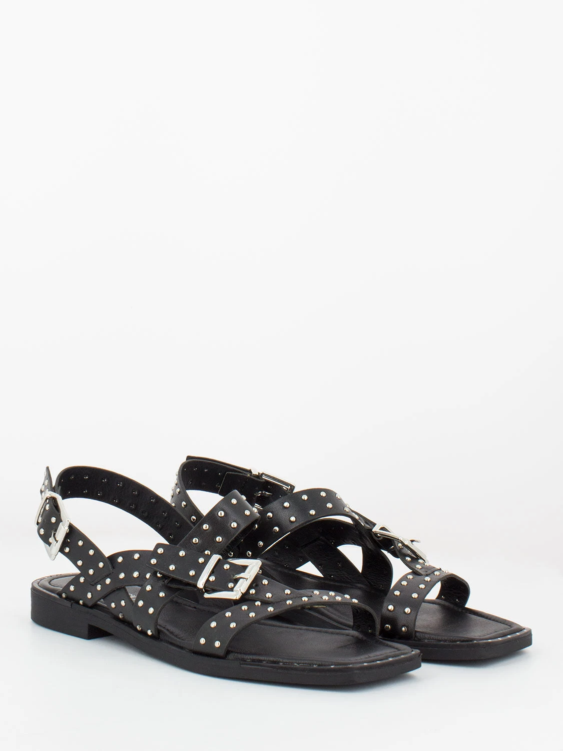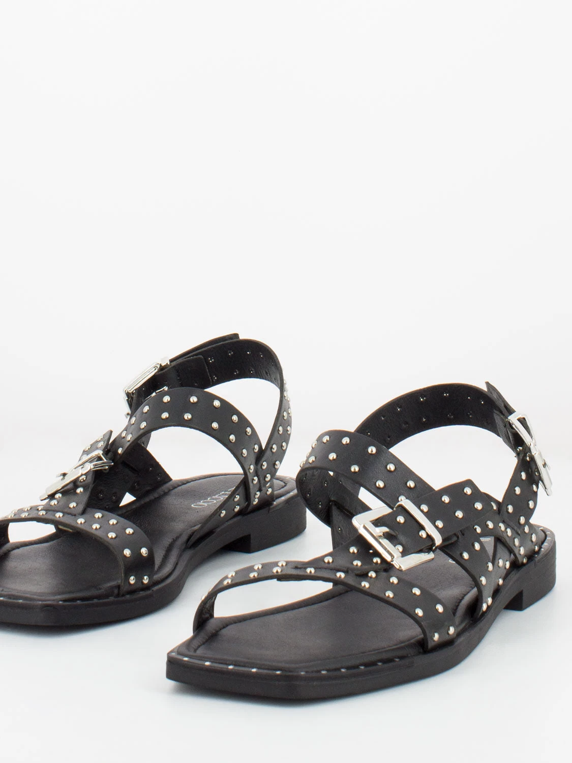 Cinturino alla caviglia e due fasce sul dorso con cinturino centrale obliquo.