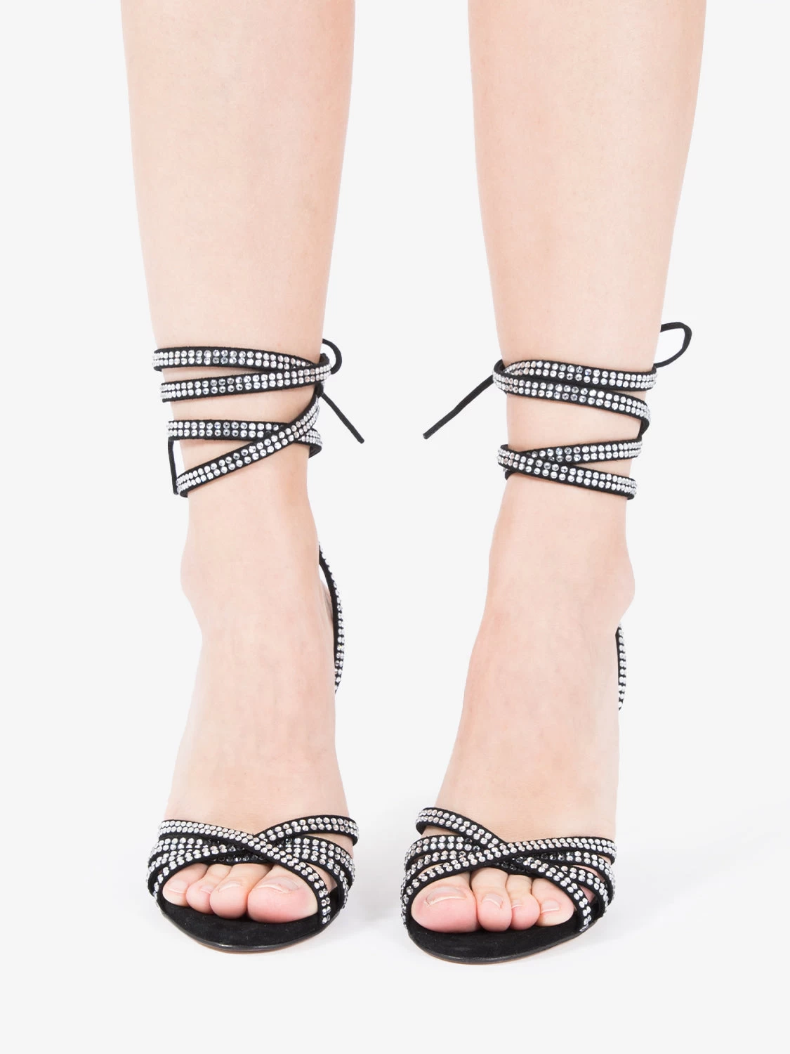 Tomaia in suede con strass a contrasto applicati.