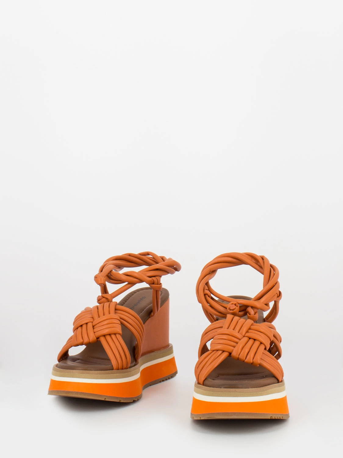 Fasce sottili in pelle imbottite ed intrecciate su dorso e caviglia.