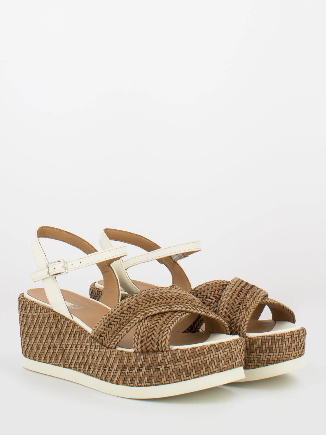 Due fasce incrociate ed intersuola con lacci intrecciati effetto raffia.