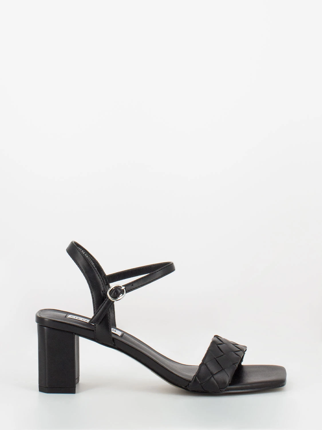 Cinturino alla caviglia, fascia in punta in ecopelle intrecciata.