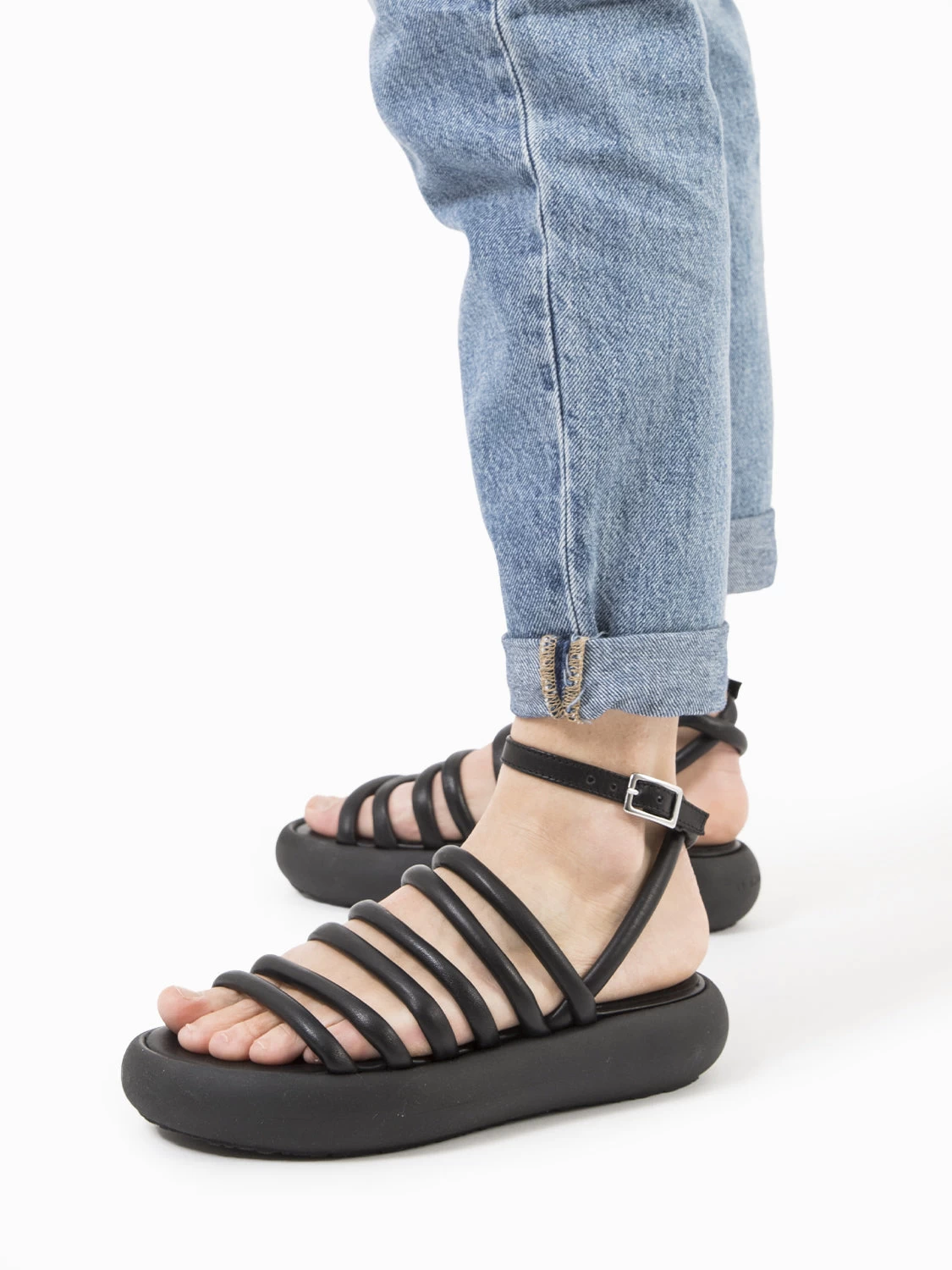 Fasce in nappa sul dorso, cinturino alla caviglia regolabile.